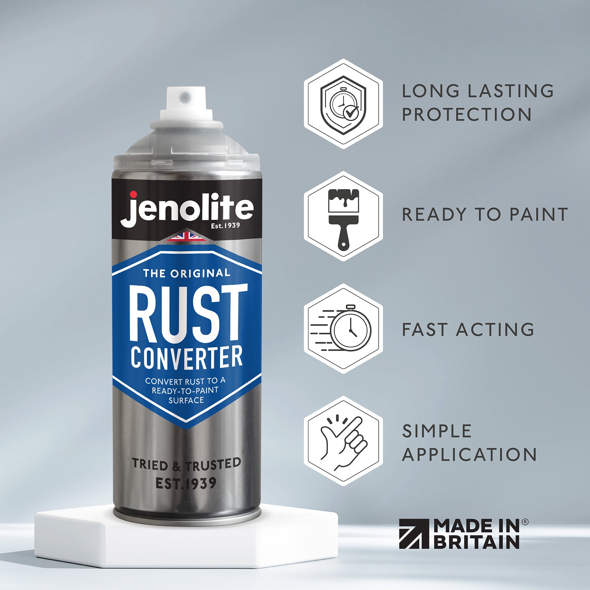 JENOLITE Convertisseur de Rouille Spray | 3 x 400ml | Traitement Antirouille pour Métal | Antirouille Carrosserie | à Base d'Époxy Convertisseur de Rouille | Convertisseur de Rouille et apprêt