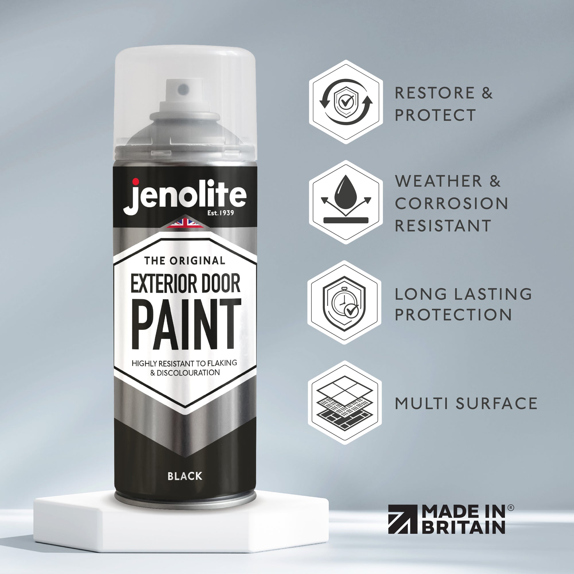 JENOLITE Peinture aérosol pour portes extérieures | Noir | Multi surfaces | Portes, portes de garage et fenêtres en métal et bois, 400 ml | RAL 9005